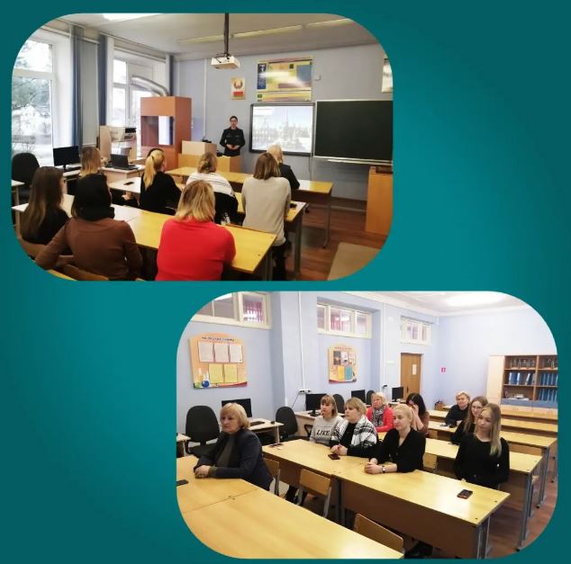 24.01.2023В рамках акции «Безопасность в каждый дом» инспектор сектора пропаганды и взаимодействия с общественностью Гродненского районного отдела МЧС Ангелина Дмитриева приняла участие в заседании трудового коллектива учреждения образования "Поречская государственная санаторная школа-интернат Гродненского района".
