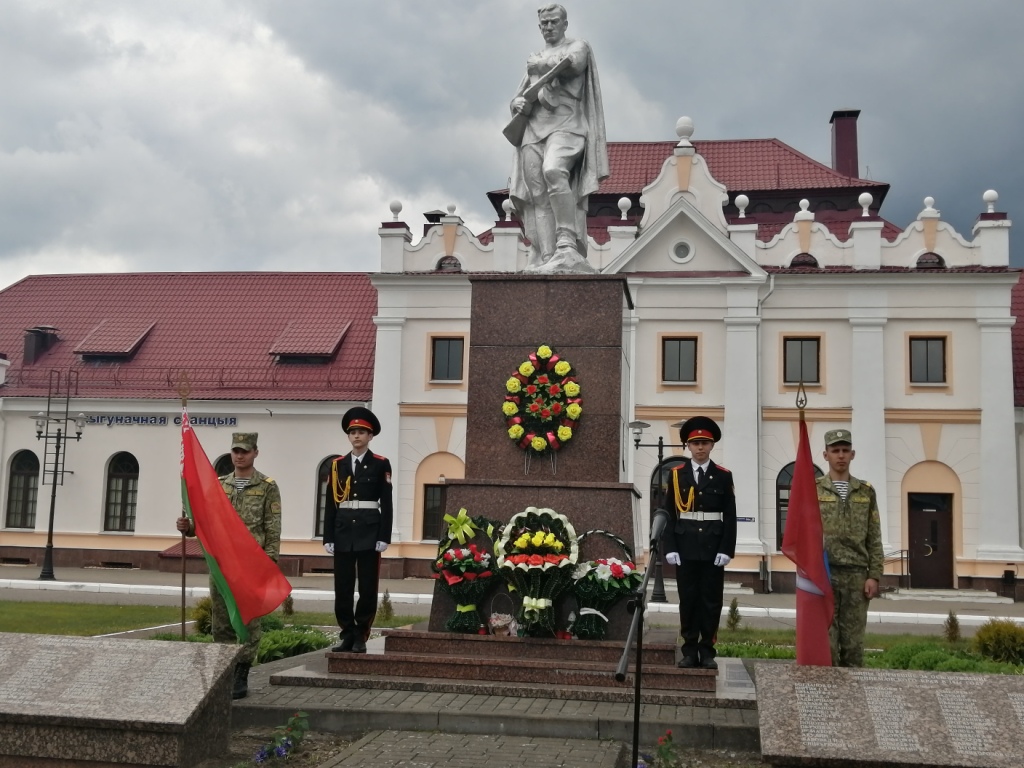Сегодня приняла эстафету Гродненская пограничная группа. В аг. Поречье у памятника погибшим воинам на привокзальной площади состоялся торжественный митинг, в котором приняли участие учащиеся и педагоги нашего учреждения образования.