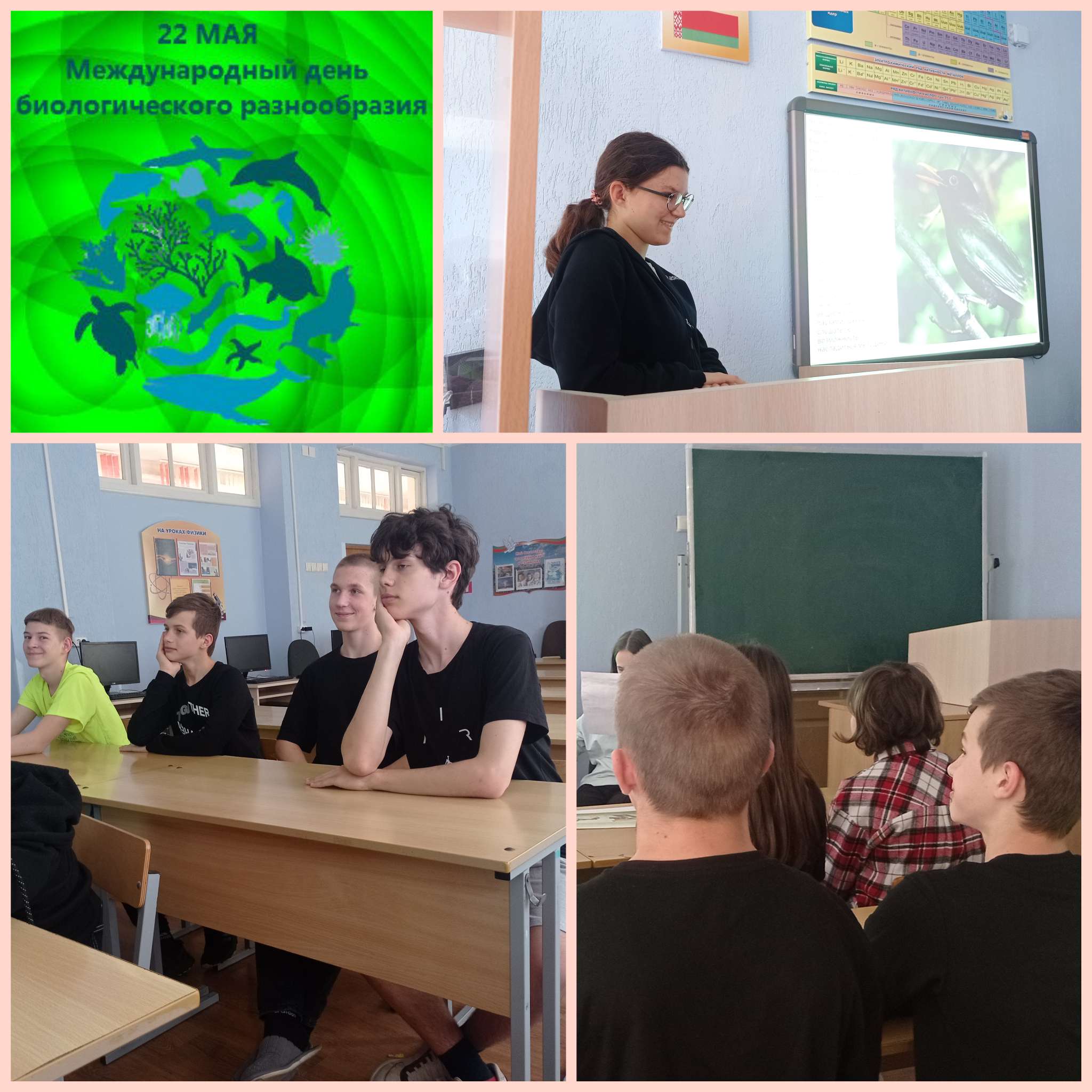 22.05.202322 мая ежегодно отмечается Международный день биологического разнообразия. В рамках информационного часа учащимся сообщили об истории появления этого события, что обозначает понятие биоразнообразие. Главные цели мероприятия: способствование развития у учащихся представления о биологическом разнообразии окружающего мира, о сложности и многообразии жизни, о воздействии человека на живую природу, как прямого, так и косвенного.