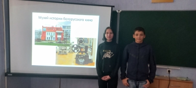 14.12.2023Во время проведения информационного часа учащихся познакомили с историей появления белорусского кино, знаменитой киностудией «Беларусьфильм». Напомнили учащимся названия и показали короткие эпизоды наиболее известных кинокартин данной киностудии. Обратили внимание на то, что белорусский кинематограф подарил зрителям немало замечательных картин. Наша страна по праву гордится талантом выдающихся режиссёров, актёров, художников и операторов киностудии «Беларусьфильм».