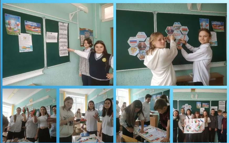 При проведении единого урока классные руководители напомнили учащимся о важной дате в жизни Союзного государства, отражающей братство и дружбу народов, добрососедство, взаимопонимание и всестороннее сотрудничество в самых разных сферах. Акцентировали внимание на молодежную политику и молодежные программы Союзного государства, сотрудничество, достижения культур братских народов, сохранение общего духовного богатства, укрепление дружеских связей, межрегиональное молодежное сотрудничество. А для актуализации знаний организовали просмотр видеофильма «Беларусь и Россия – крепкие союзники» и виртуальную экскурсию «Достопримечательности Беларуси и России».