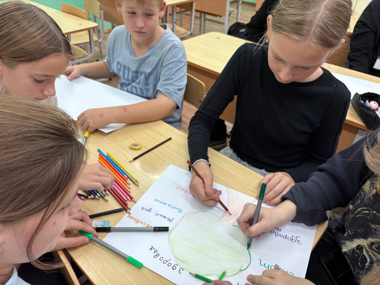 30.09.2025Здоровый образ жизни - одна из главных тем направлений воспитания в школе. В нашем учреждении образования регулярно проводятся мероприятия с целью пропаганды здорового образа жизни. 30 сентября члены ученического самоуправления приняли участие в коллективно-творческом деле "Дерево здоровья".