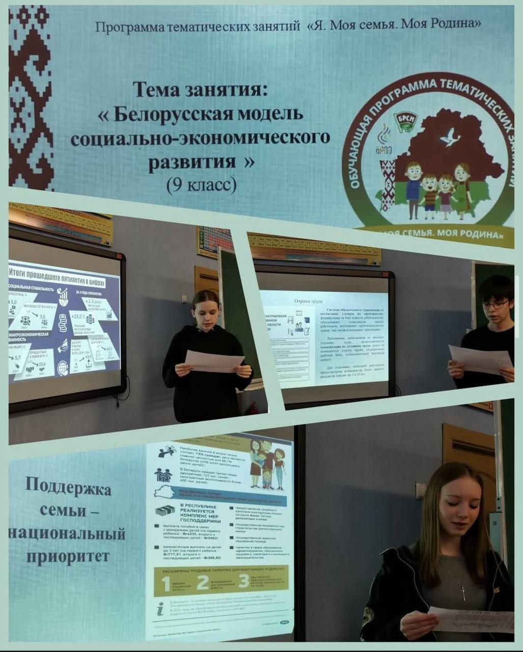 22.01.2026В 9 «А» классе прошло очередное занятие по программе «Я. Моя семья. Моя Родина», целью которого являлось формирование у обучающихся гражданской ответственности, патриотизма, нравственных ценностей и активной жизненной позиции. Тема для обсуждения: «Приоритетные направления социально-экономического развития Республики Беларусь на 2026-2030 годы».