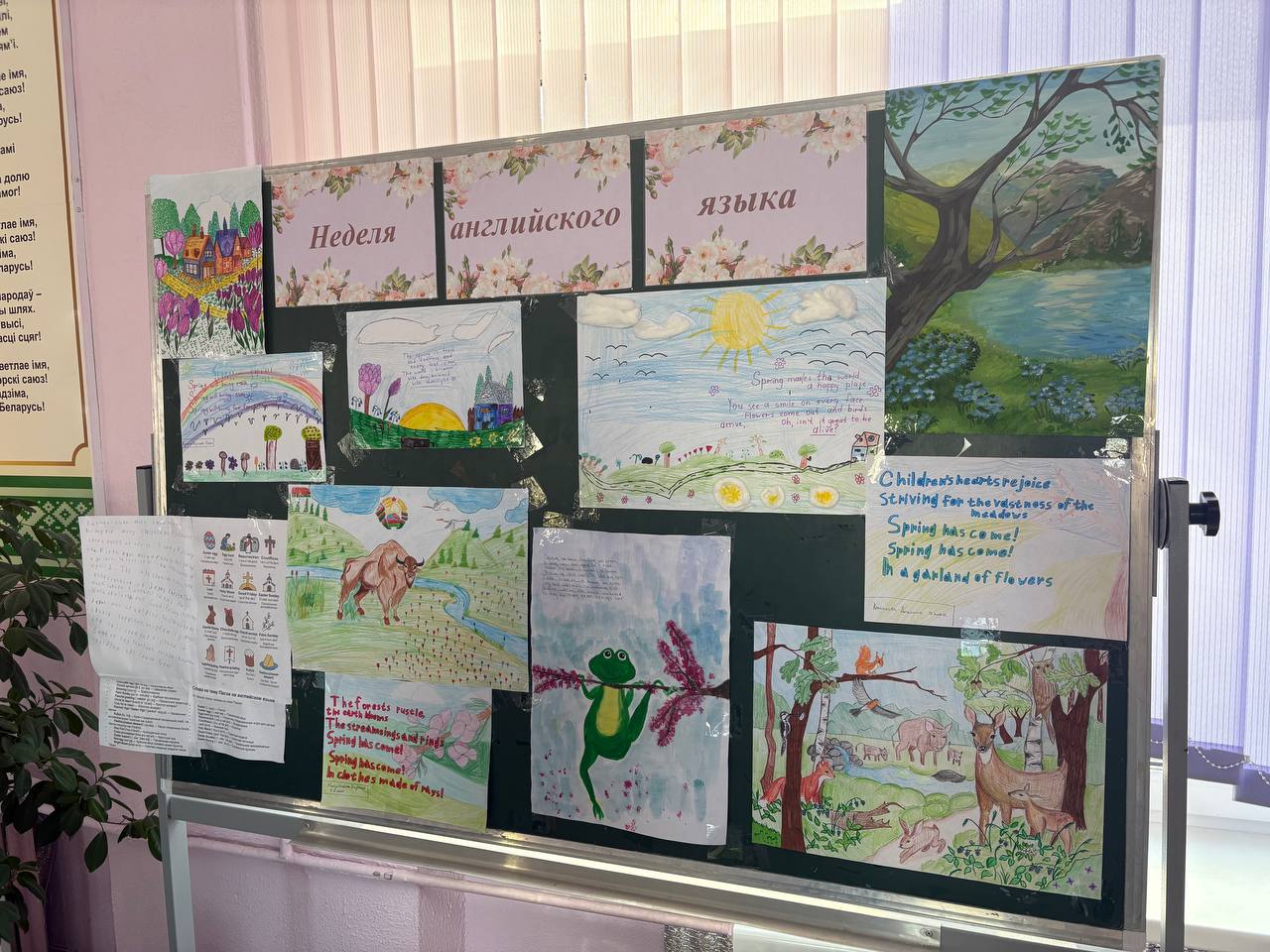 09.03.2026В нашей школе в рамках недели английского языка прошла творческая выставка рисунков под названием "Spring is coming". Ученики всех классов с большим вдохновением рисовали весенние пейзажи, цветы и сцены из жизни, а также подписывали свои работы на английском языке. Цель выставки — не только развить художественные способности учащихся, но и попрактиковать английский язык в творческом формате. Каждая работа сопровождалась кратким описанием весны на английском, что помогло ребятам расширить словарный запас и улучшить навыки письма.