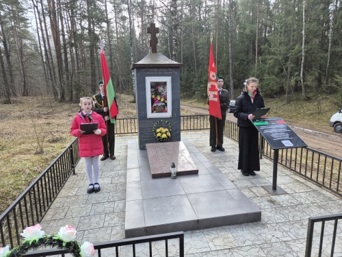 Сегодня в д. Бабино, возле братской могилы - места массового расстрела мирных жителей в годы войны - учащиеся учреждения образования "Поречская государственная санаторная школа-интернат Гродненского района" провели торжественный митинг, посвященный памяти жертв зверского террора фашистов в годы Великой Отечественной войны. Вспомнили трагедию в Хатыни и почтили минутой молчания память погибших.